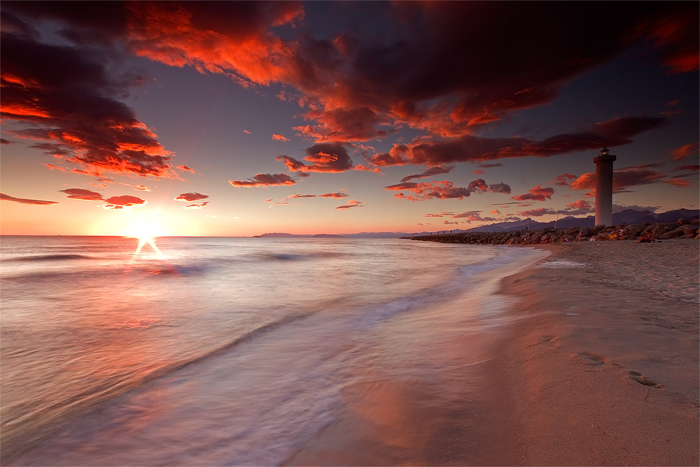 Bellissima la resa cromatica delle nuvole e dalla bellissima luce calda che illumina la spiaggia, l'acqua e il faro!
