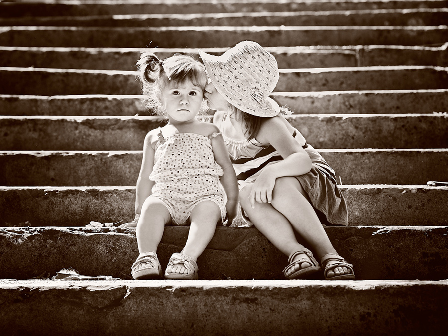 Delicatissimo il momento colto, sottolineato dall'esuberanza delle alte luci (un po' troppe su un lato della più piccolina) e da una vignettatura ad hoc...