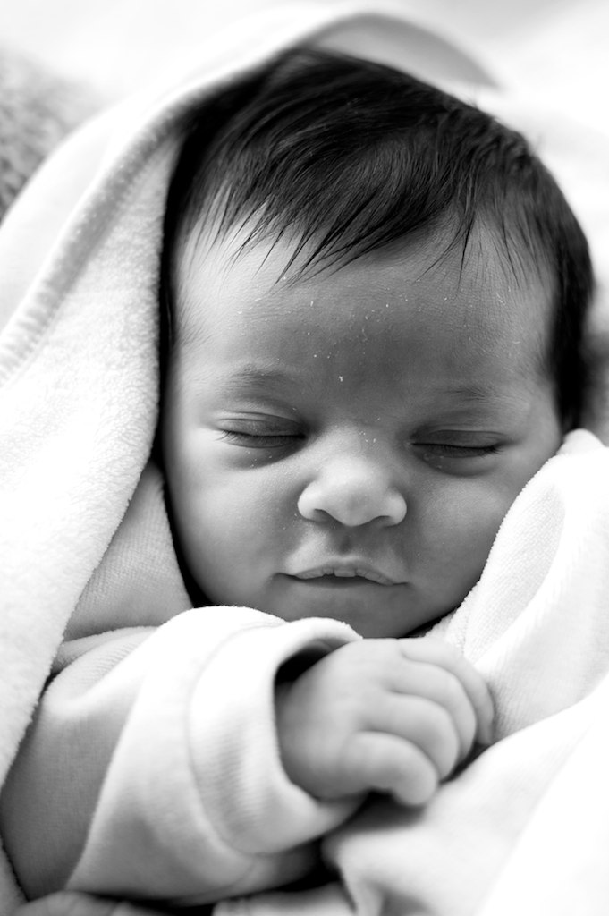 attenzione all'esposizione abbondante che ha fatto andare oltre l'estremo di gamma parecchie zone della tutina e della spugna che avvolge la neonata. |