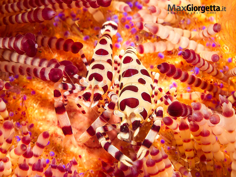 sono 2 gamberetti che vivono in simbiosi con un riccio dalle punte velenose, sono grandi circa 5 mm.