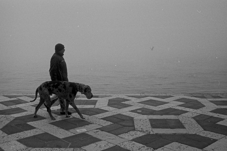 la pavimentazione crea una matrice che contrapposta al mare monocromo crea un binomio forte e valido.la nebbia ed i soggetti fanno il resto. _________________