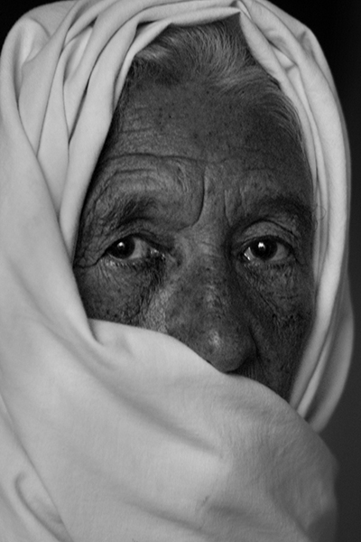ti affidi ad un taglio stretto ed al panno che copre la bocca del soggetto, per mettere in evidenza questo sguardo così intenso da meritare lo scatto; ci sono però, a mio avviso, un paio di aspetti non trascurabili che inficiano la resa finale di questa fotografia: il primo è di natura compositiva, ovvero alzando la linea degli occhi sul terzo superiore del frame, lo sguardo, fulcro narrativo del ritratto, acquista potenza.