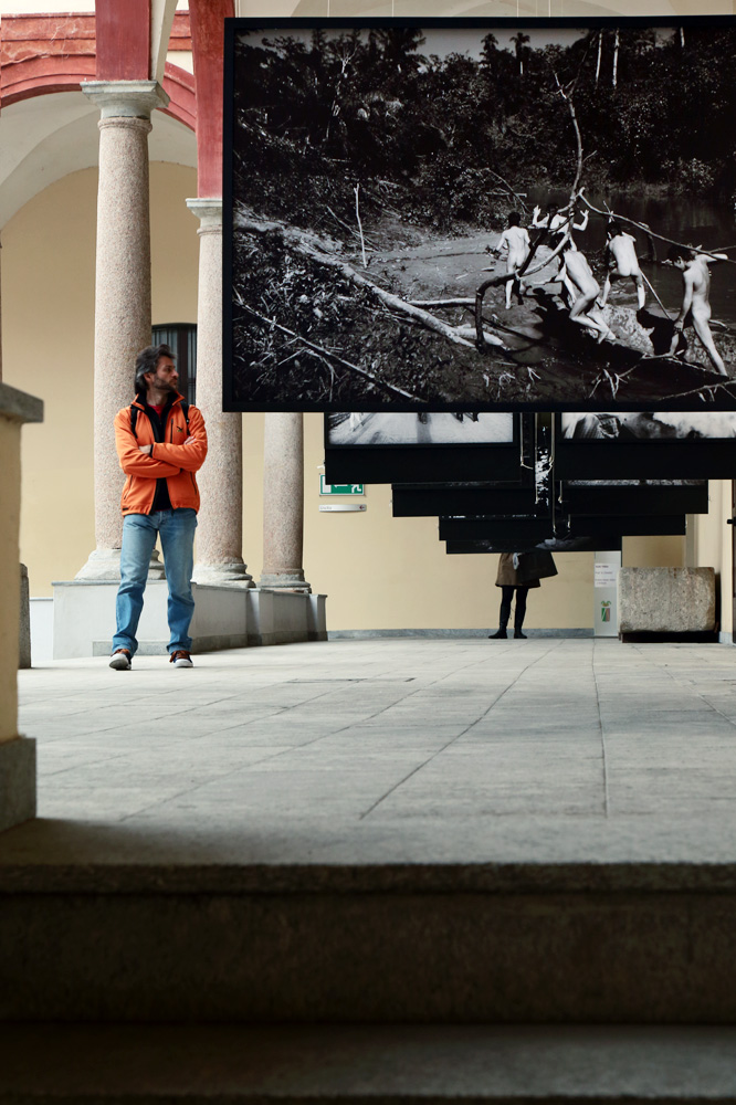 | Le fotografie appese una dietro l'altra, creano una sorta di prospettiva, che bene o male termina sulle gambe della figura in fondo, questo è quello che mi tira di piu, però lo scalino in primo piano, il muretto e il tipo a sinistra, si fanno notare senza partecipare, almeno dal mio punto di vista. |