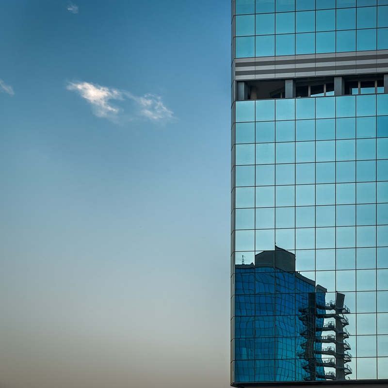 Elegante nella gestione complessiva della scena, il riflesso sulla grande vetrata crea una nuova immagine e quindi una nuova architettura..
