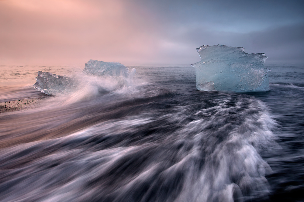 Location di grande fascino qui "raccontata" con una fotografia di grande dinamismo. L'acqua sembra travolgere il ghiaccio che, nel tuo scatto, rimane però perfettamente fermo. Tonalità metà "calde" e metà "fredde": ritrovo in questa riproduzione l'atmosfera di quel luogo.