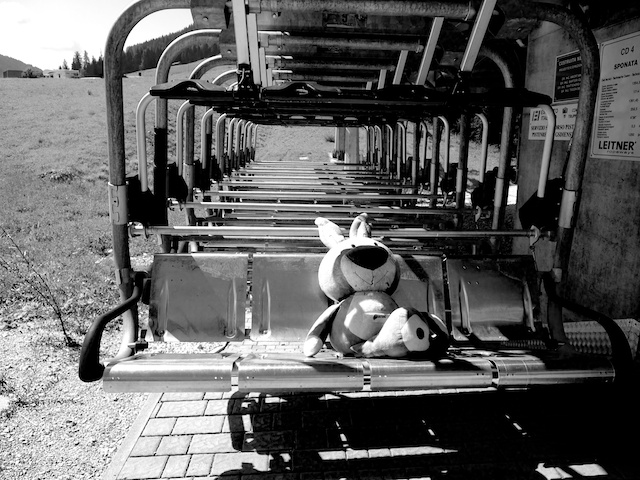 Mi piace l'idea di aver ripreso questo pupazzo abbandonato (?) sugli impianti, quasi in attesa del ritorno della stagione sciistica