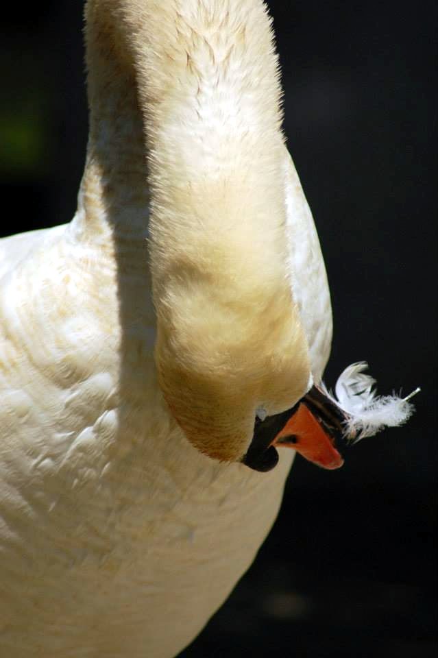 Momento in cui il cigno si sta rassettando le piume, non male l'idea del taglio però l'occhio sarebbe stato essenziale vederlo bene!