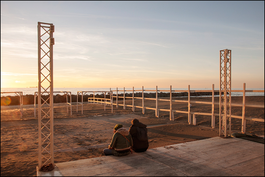 Il riscontro dei vostri punti di vista è stato prezioso proprio per verificare la mia idea attorno a questa fotografia, ossia che proprio l'inazione, la passività potessero risultare in questo scenario significativi. I segni di una certa apatia in questa coppia, loro seduti sul bordo di una sorta di palcoscenico vuoto, davanti solo ostacoli che si frappongono tra loro ed il mare lontano, mentre il giorno volge al suo termine. Mi sembrava una scena sospesa e venata di malinconia e volevo vedere se arrivava questa mia sensazione, ma evidentemente era solo una fantasia mia... e l'ho dovuta pure spiegare Crying or Very sad . Ho capito che funziona la scenografia ma non gli attori.