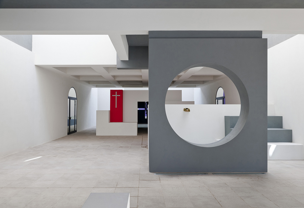 Anche se immagino che sia uno spazio un po' più ampio di un interno classico, fantastica la successione dei volumi e delle forme, così come i colori e la prospettiva complessiva..