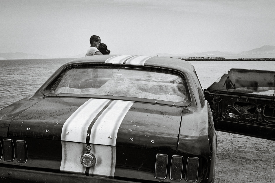 Riguardo alla citata distanza di sicurezza, o al tempismo, in effetti non mi sognerei mai di piombare di colpo su una scena del genere e scattare, a maggior ragione in Venezuela, dove per strada spesso si rischia molto e per molto poco. In questo caso mi sono prima avvicinato all'auto e al suo proprietario, entrambi soggetti potenzialmente meritevoli; dopo aver visto che aria tirava (tranquilla) mi sono mostrato interessato alla vecchia Mustang e ho chiesto all'uomo se potevo farle qualche scatto. A quel punto ero ormai ufficialmente autorizzato a muovermi nell' "area di interesse"; ho scattato un paio di foto alle decorazioni sulla fiancata dell'auto, poi mi sono spostato sul retro e mi si è presentata più o meno questa scena: il tipo si era completamente disinteressato a me per interessarsi (giustamente) alla sua donna. Ho fatto diverse foto senza che i due si preoccupassero minimamente della mia presenza. _________________ Franco