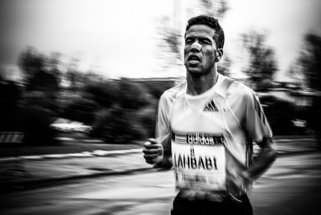 Il panning riuscito nel fermare la faccia, l'ambiente circostante sfocato, la fatica che si legge sul volto dell'atleta sono tutti elementi validi per questo genere di foto.