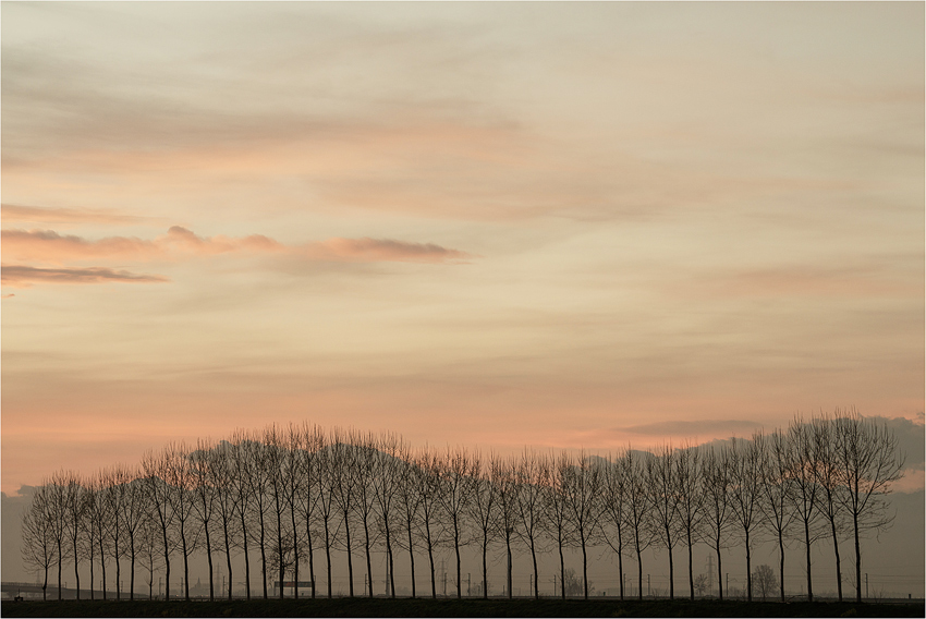 Bello l'effetto creato dagli alberi alla stessa altezza delle nubi.