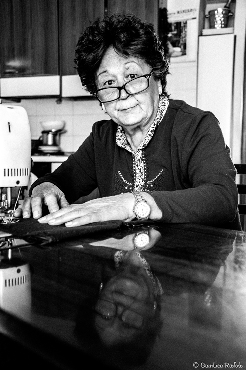 Lei è Annarella 75 anni. Nella vita ha 2 amori: la famiglia (marito, figli, nipoti) ed il cucito. Un mestiere il suo imparato (come si usava una volta) fin da bambina ed ancora oggi lavora con tanto amore e devozione.
