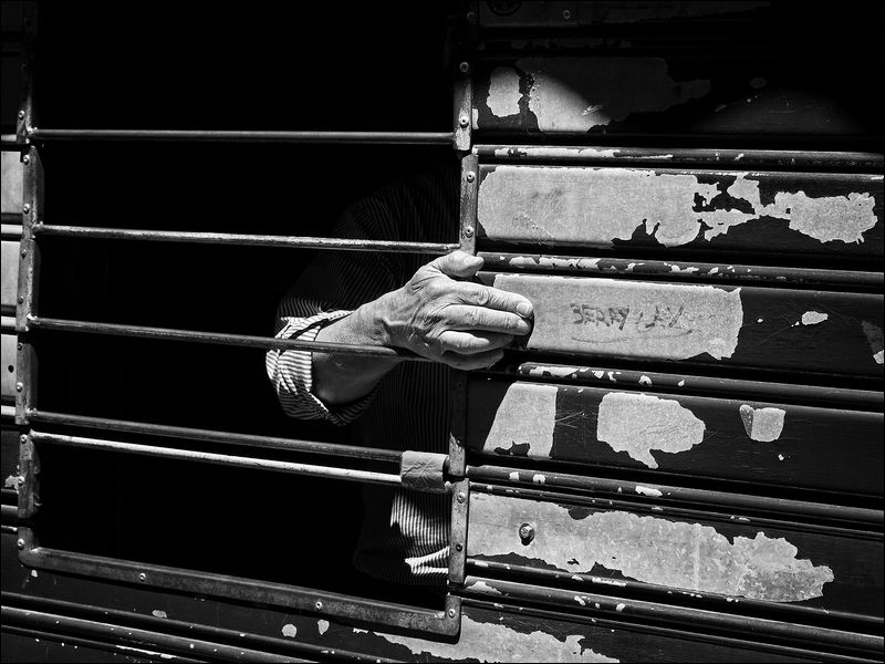 | Eccezionale colpo d'occhio che ricorda immagini famose del passato (una di HCB, per esempio). In una ambientazione tutto sommato rassicurante, probabilmente la saracinesca di un negozio, quella mano che sporge dalle sbarre come dalle inferriate di una prigione consente una sottile riflessione sulle contraddizioni della vita dell'uomo moderno. Diretta tra le mie preferite. |