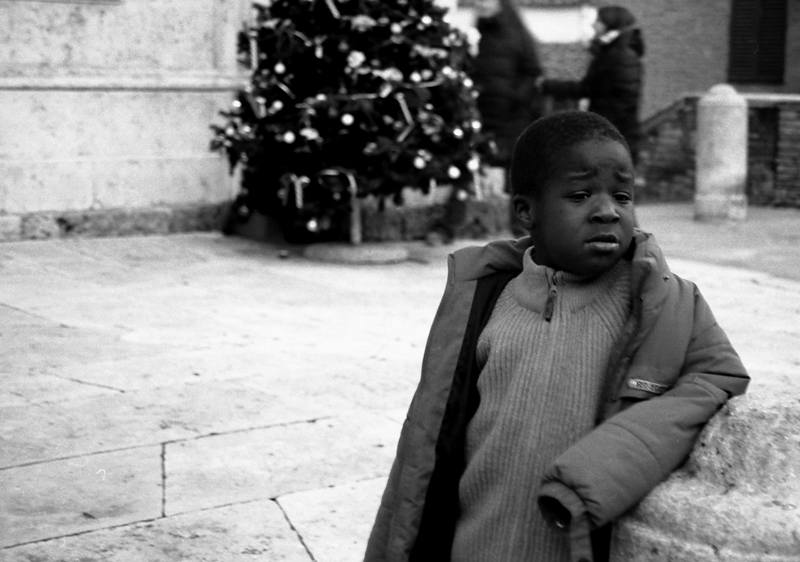 Arnold, nome naturalmente immaginario ma che si addice bene ad un bambino di colore (almeno a parer mio), è stato fotografato in un momento di pausa dallo storico gioco "acchiapparello".... quindi confermo lo stato di sofferenza (riprender fiato?).