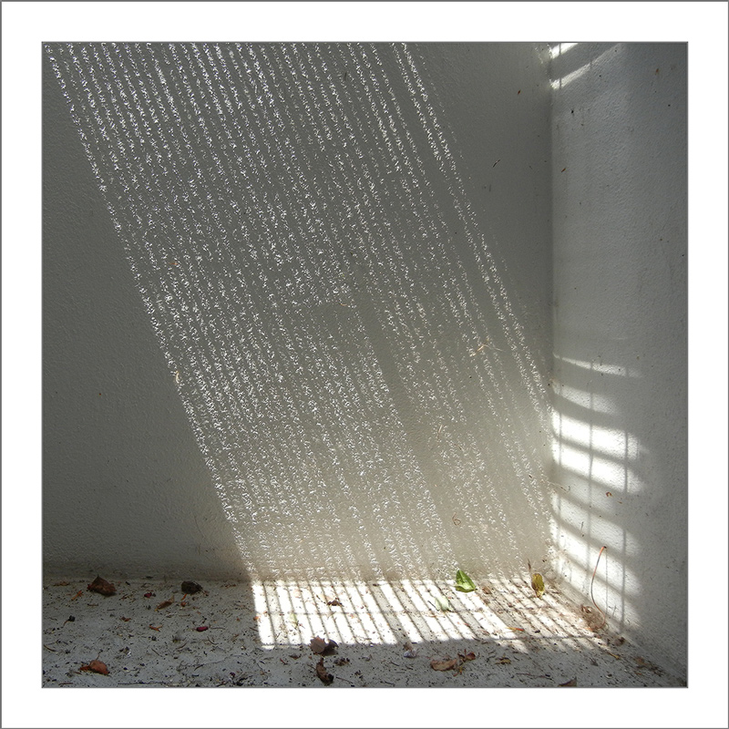 La trovo molto bella. Fatta di luce che si materia sul muro concreto e palpabile. Come corde di un grande salterio vibrano emozioni...