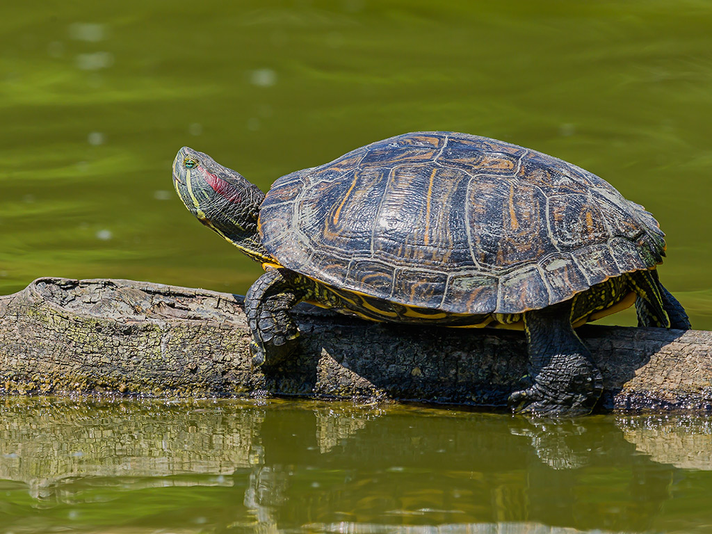una trachemys scripta elegans, ormai si trovano dappertutto nei fiumi e nei laghetti.
