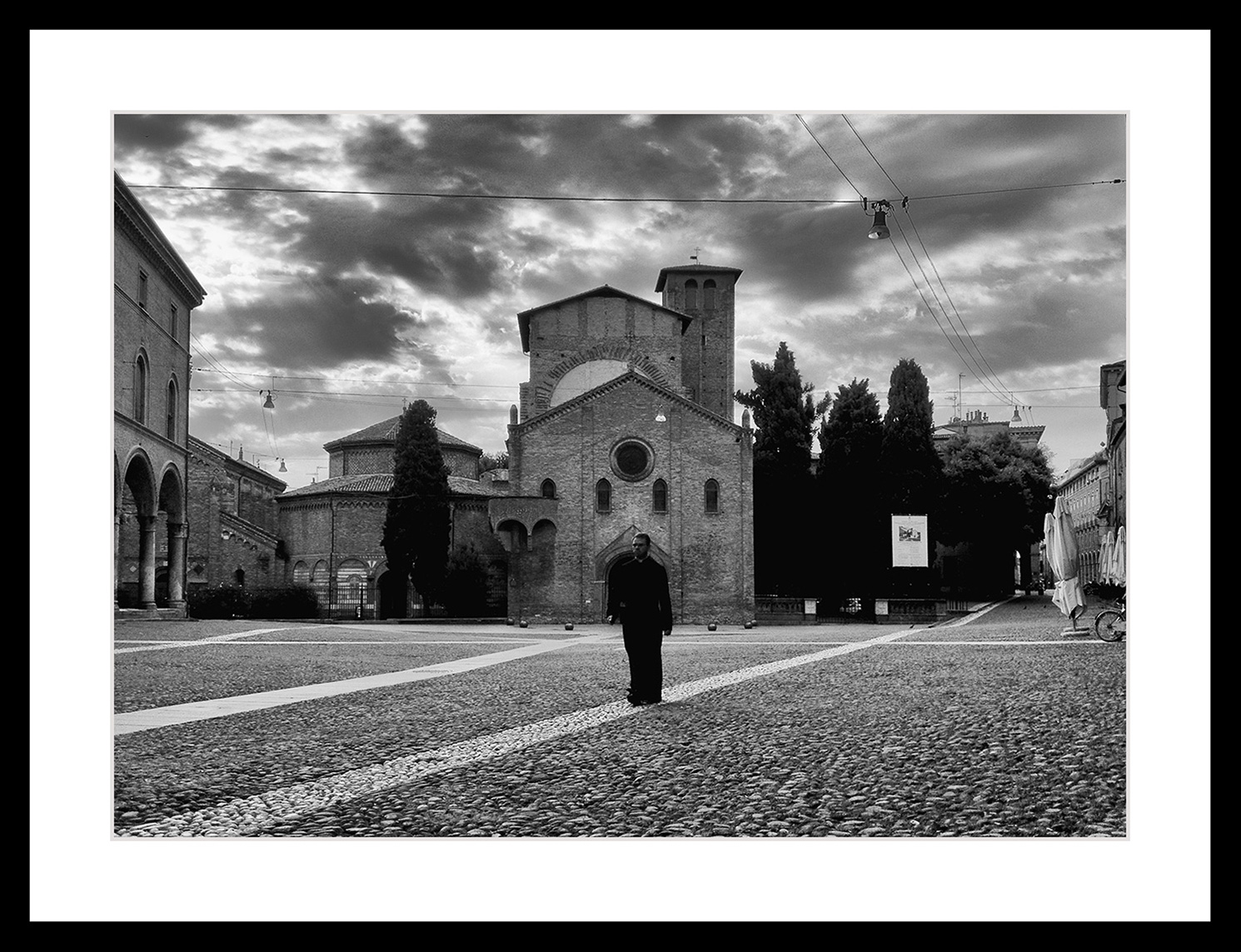 . Purtroppo avevo con me solo l'iPhone e con quello ho scattato non resistendo alla vista del prete che camminava sulla diagonale bianca…