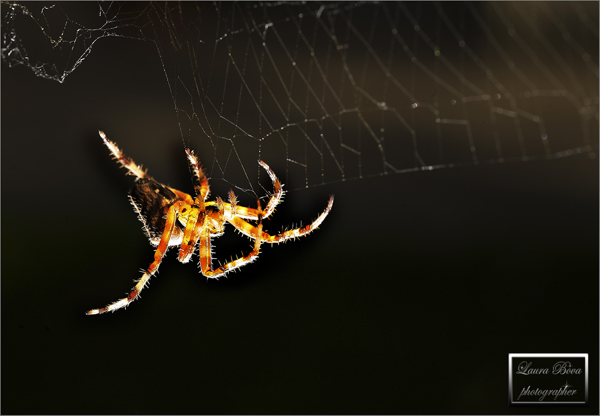 A mio gusto, avrei visto meglio il ragno nell'angolo in basso a sinistra, e molta più ragnatela visibile, possibilmente più a fuoco (qui l'allineamento non c'è proprio).