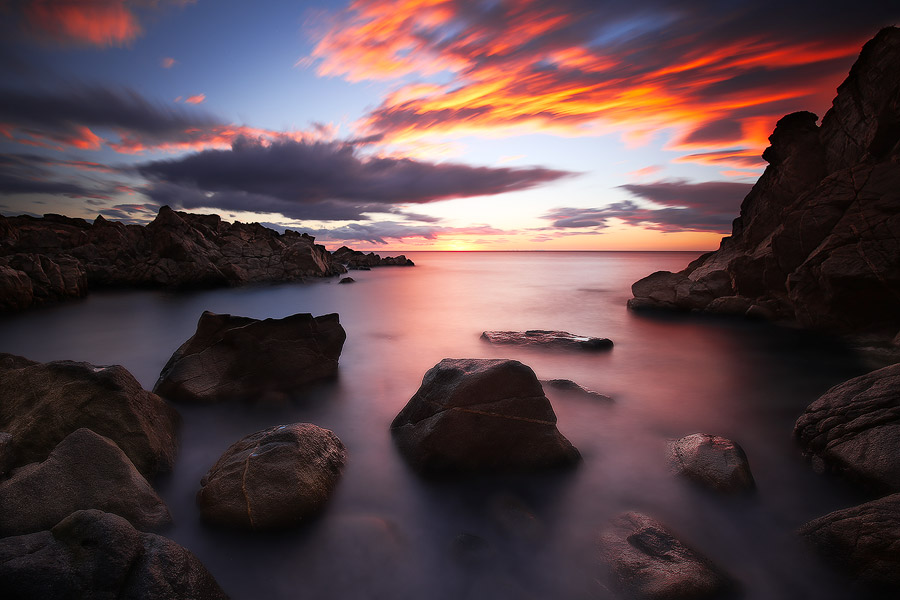 L'utilizzo di un tempo di scatto lento ha prodotto il classico effetto setoso sull'acqua che qui, grazie agli scogli in primissimo piano, crea un piacevolissimo e particolare contrasto.