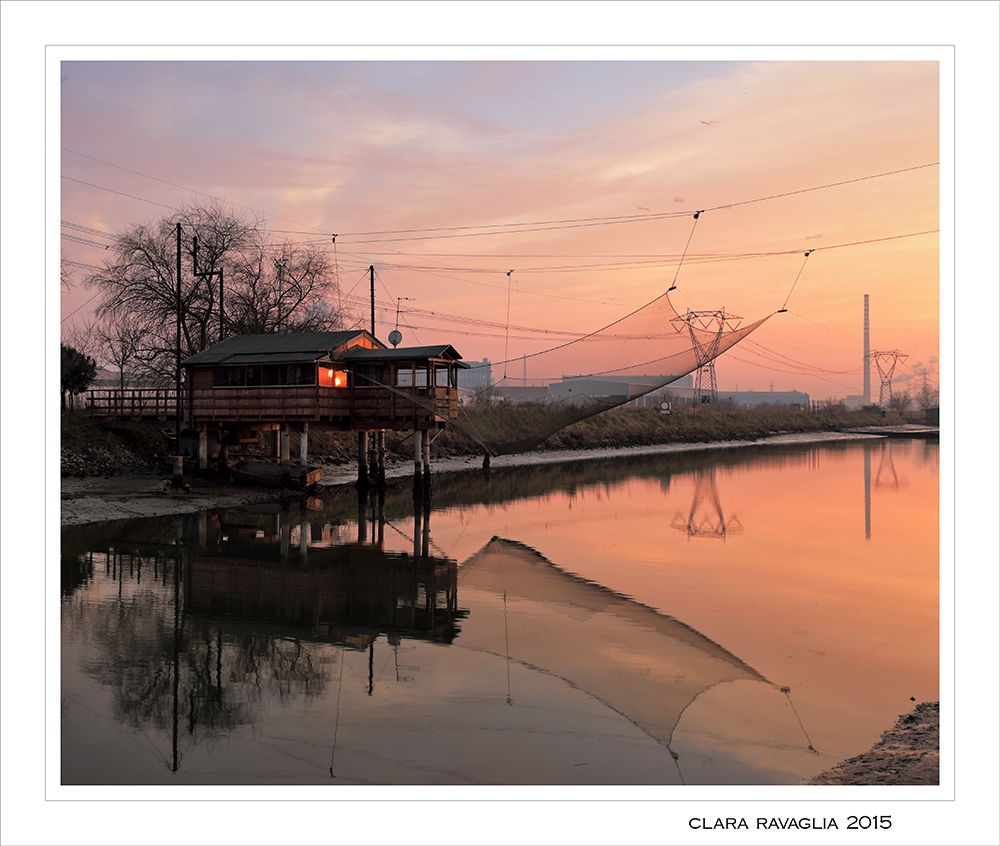 Questa specchio d'acqua, che noi ravennati appassionati di fotografia riprendiamo spesso, purtroppo in questi mesi è oggetto di inchiesta, per dispute su collocazioni o demolizioni di vecchi capanni, e anche ahimè, cosa ben più grave, per presenza accertate di depositi abusivi di amianto.. ( tutta Italia è paese...) . Sarà per questo che riprenderlo con le luci morbide del tramonto per me è quasi una necessità, una clemenza data naturalmente dalle luci della sera ad un paradiso tormentato.