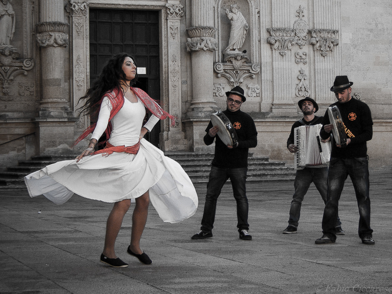 | Mi sembra immergermi nel contesto e di partecipare allo spettacolo. Il vivido bianco dell'abito e i rossi accessori sembrano irrompere e imporsi all'interno della scena. Mi tornano in mente gli intensi periodi estivi passati in Puglia nel mio girovagare col camper sempre alla ricerca di nuove ed interessantissime mete. Ciao |