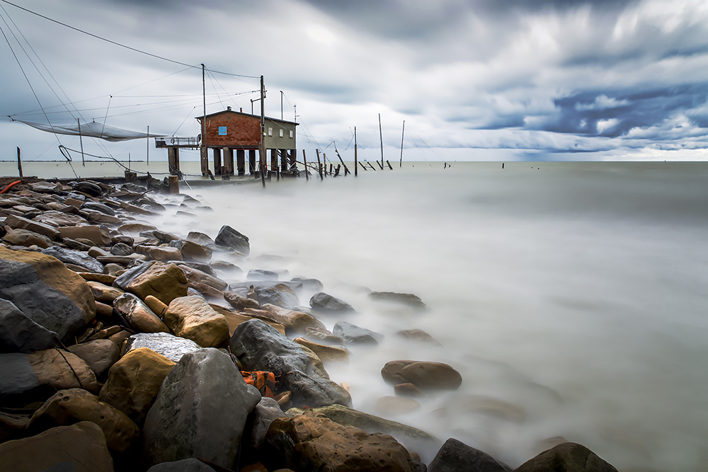 d kalle ha effettivamente ragione, ma il motivo per cui si finisce sempre per soffermarci a riprenderli , è che sono a loro modo affascinanti: così protesi sul mare , affacciati alla sua serenità o alla forza delle onde invece nelle giornate burrascose. La sfida allora è cercare di darne, come sempre, una interpretazione personale. Qui giochi sul classico, sia come inquadratura che come luce. Ma sai ben dosare il tempo lungo, anzi direi molto lungo in questa circostanza, tanto da rendere con impalpabile consistenza sia la distesa d'acqua che la corsa delle nuvole.