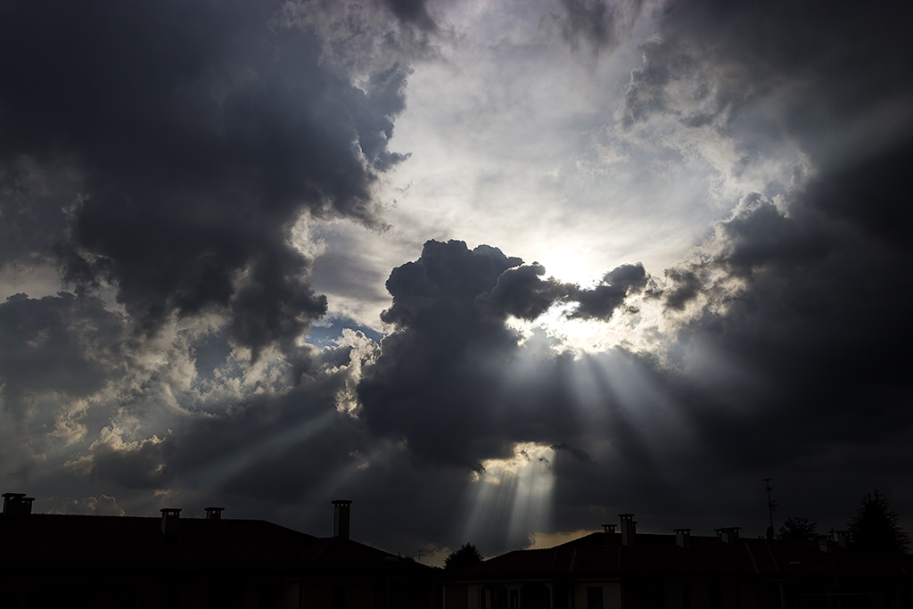 Le luci erano così forti dietro le nubi cupe che è bastato scendere coi tempi e sottoesporre un pizzichino. Il cielo è risultato ancora più cupo e le luci enfatizzate e non bruciate (a parte la zona bucata dal sole), un pizzico di contrasto e via...  _________________ - Fotografo della domenica |