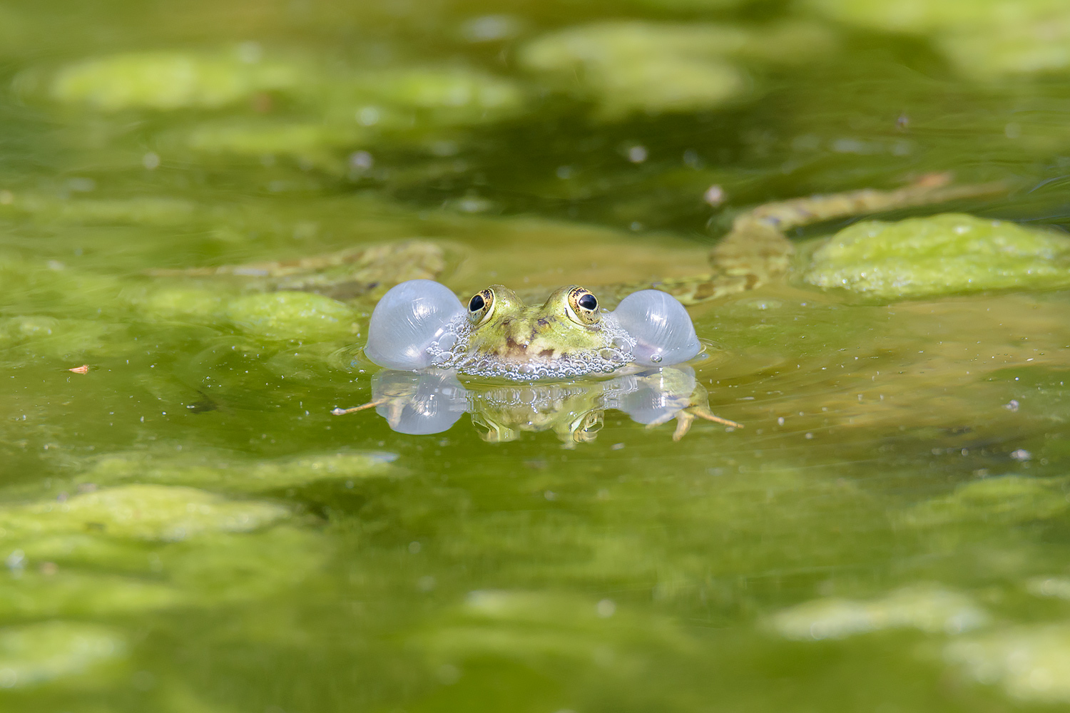 bello il contrasto cromartico delle sacche della gola (non so come chiamarle) con l'acqua..
