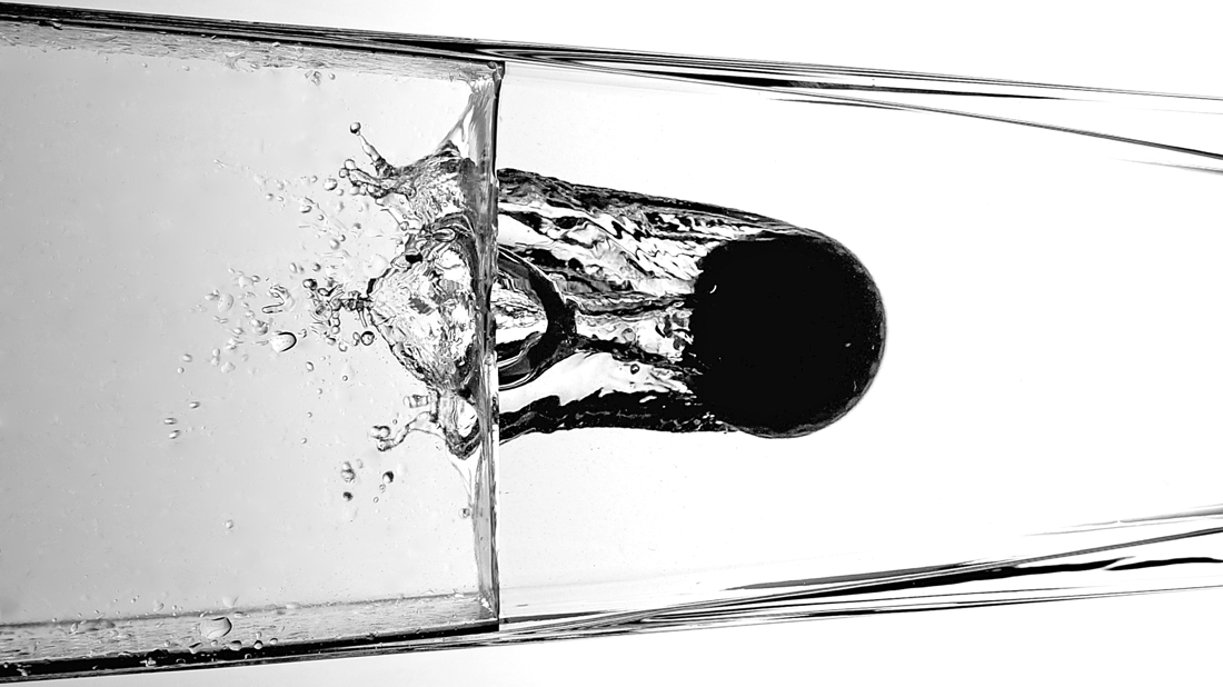 Giovanni, la vedrebbe in verticale in conseguenza della legge di gravità, io l'ho pensata come uno start, uno sparo tra l'elemento aria e l'elemento acqua...