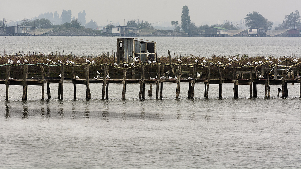 Un bel happy hour di gabbiani! Certo il tempo e le luci non erano le più appetitose.. fotograficamente, però hai mantenuto la naturalezza della scena, non hai esagerato nella apertura delle ombre o nella saturazione delle tinte, cosa che talvolta si fa tentazione in queste circostanze e, sopratutto, cose per me più apprezzabile qui, hai composto intelligentemente, senza impallare una fascia orizzontale di paesaggio con la successiva, ed era un rischio reale nella circostanza. Ottime le reti in lontananza, la fila di gabbiani ovviamente protagonista e anche un certo grado di sfumature nell'acqua del bacino, all'ampia base del fotogramma.