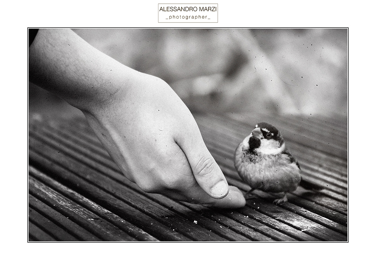 eheh avete ragione.. dietro a questi difetti in realtà ci sono mie scelte personali. Lo scatto risale a due anni fa quando, due giorni sul lago di garda, prendevo addomesticherà per la prima volta con la nikon7100. focale massima a 140mm.. e diaframma non sufficientemente chiuso per permettermi di mettere a fuoco sia la mano che il passerotto. andavo di fretta per non perdere il momento. ho due versioni.. questa e un'altra dove la mano e sfuocata mentre il passerotto nitido e guarda verso di me. a colori troppe distrazioni sullo sfondo. quindi decido sul b/n. Poi con nick provo a rimediare lo sfuocato del passerotto per provare a renderlo nitido il più possibile. insomma una serie di difficoltà per recuperare questo scatto che a livello emotivo mi prende particolarmente. rimasto in archivio per due anni la voglia di ottenerci qualcosa e di mascherare i difetti mi hanno portato all'inserimento della texture.. proverò a postare una versione senza ma non sono convinto. penso che quando qualcosa non riesci a debellarlo devi darci corda ..