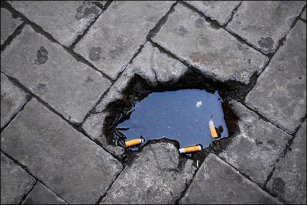 I mozziconi di sigaretta fanno oramai parte integrante del micropaesaggio che si estende ai nostri piedi.Sembra che il loro accumularsi provochi anche problemi di intasamento dei tombini.Complimenti per l'occhio acuto e la tua sensibilità che ha saputo cogliere in questa piccola,inquinata pozzanghera un velo di bello.  _________________ Sergio Demitri https://www.flickr.com/photos/124946035@N02/ |