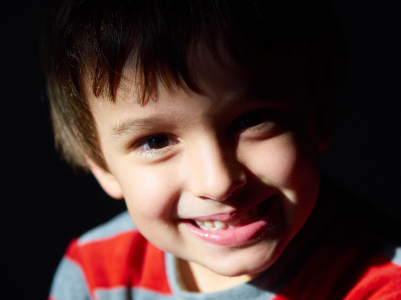 Non sembra uno scatto posato, bensì uno scatto al volo. Fosse stato un posato personalmente non l'avrei fatto posare con una luce così dura. E proprio la luce dura, insieme al primo piano, fa una strana sensazione... soffocante. Vedere oltre metà viso in ombra con una piccola porzione di luce, diciamo che non è piacevole, soprattutto per un bimbo.