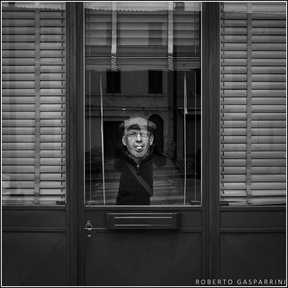 La sovrapposizione del tuo riflesso con la figura dell'uomo lo trasforma quasi in un burattino!