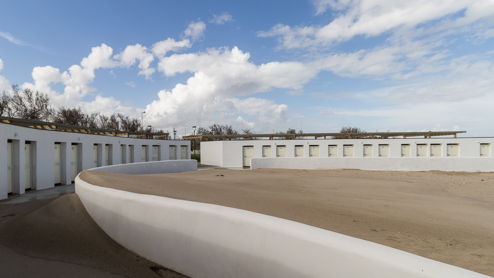 Un bel gioco di curve, fra sabbia e muratura , che compone una visione armonica. La presenza abbondante della nuvole bianche regala dinamismo alla visione.