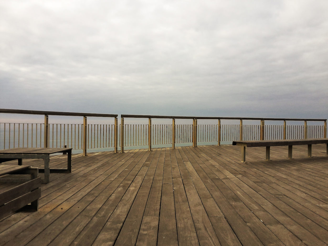 | Ciao! Trovo interessante la soluzione compositiva, ben giocata sulle linee di fuga della pavimentazione lignea. Le cromie del cielo e la mancanza di presenza umana aggiungono un' atmosfera particolare. |