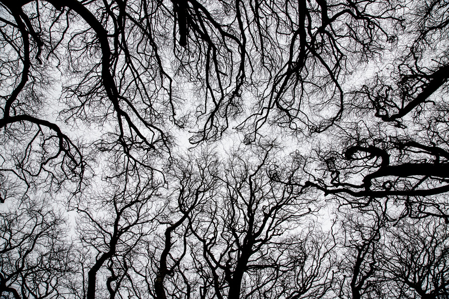 Sia per il punto di scatto che per compo e conversione , spicca orginale nell'ambito del classico -ripresa di cime alberate dal basso.