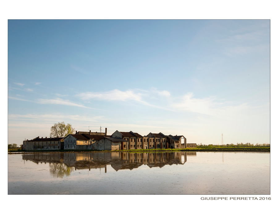 Nel periodo delle risaie allagate si trovano millanta spunti per fotografare il paesaggio ed i suoi riflessi. Tu ne dai qui una bella esemplifiacazione, con il tuo stile misurato e delicato nei toni e molto personale nella costruzione, che sempre da un grande risalto al cielo.