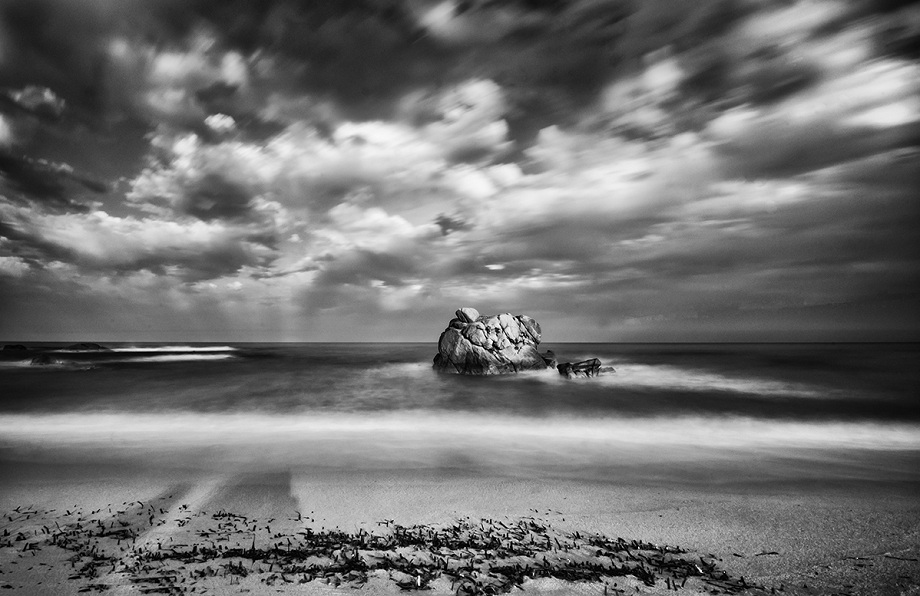 Bella. L'alternanza di elementi statici e mossi per effetto del tempo lungo, da drammaticita' alla scena.