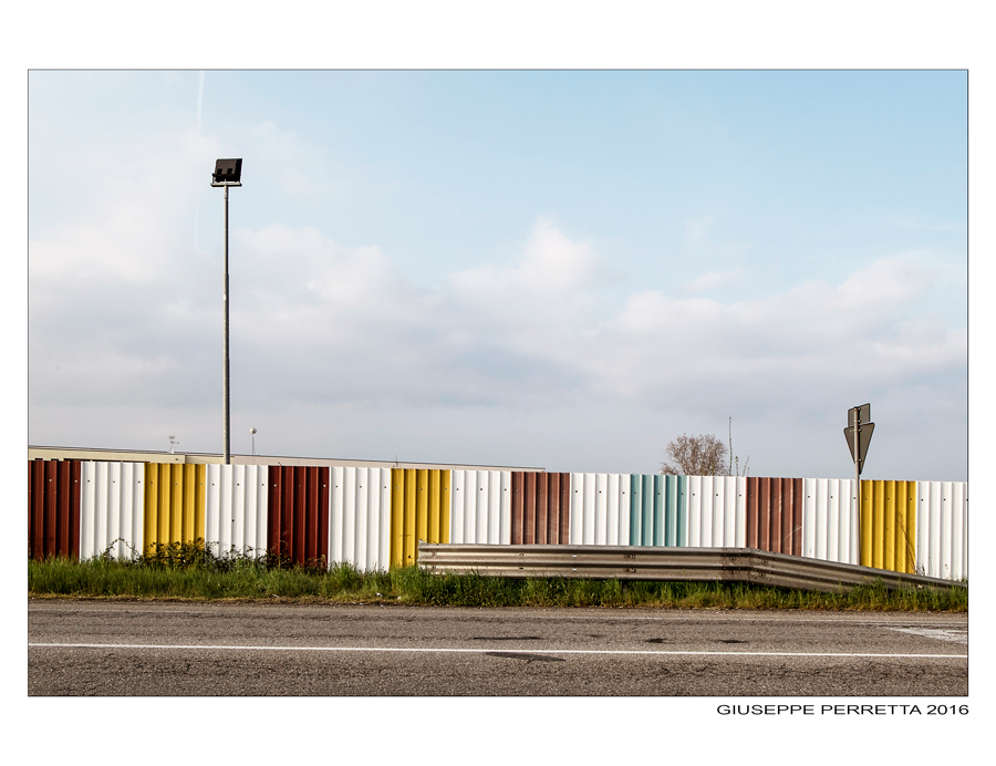 belle tonalità, bella composizione, bei cromatismi nella barriera. avrei clonato quella scia di aereo sopra al faretto.  |
