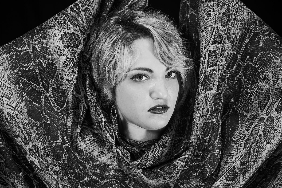 Lo scatto è stato creato con una mia amica, in uno studio super improvvisato, con una sciarpa "pitonata" che avevamo a disposizione un po' per caso.
