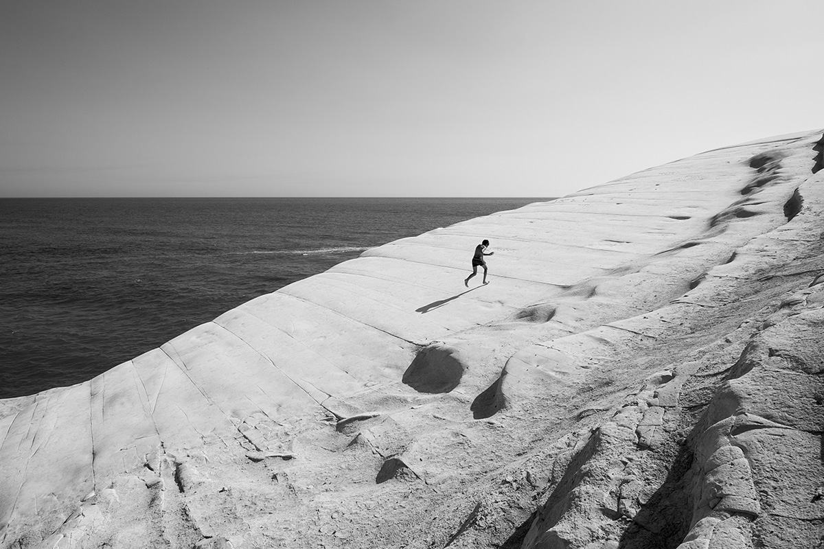 Bellissima questa rappresentazione della fatica sovrana nella gambe dell'uomo intento nella scalata di questo grande masso.