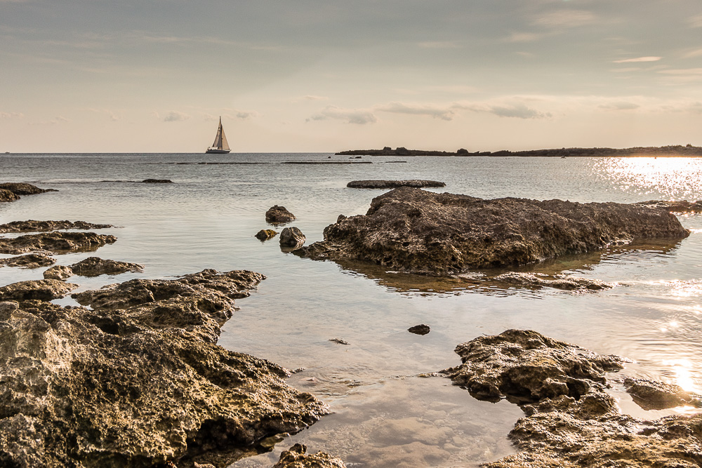 Molto bella la composizione con lo spazio tra le rocce che guida verso l'imbarcazione perfettamente inserita. Personalizzata la post che fa tendere molto a cromie calde però lasciando alcune zone del cielo verdastre. Peccato le zone bruciate a destra. Nel complesso però è una gradevole visione Smile