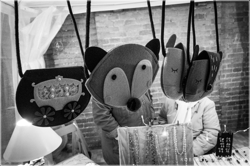 La coppia di borse a destra restituisce un "volto" completo alla donna.