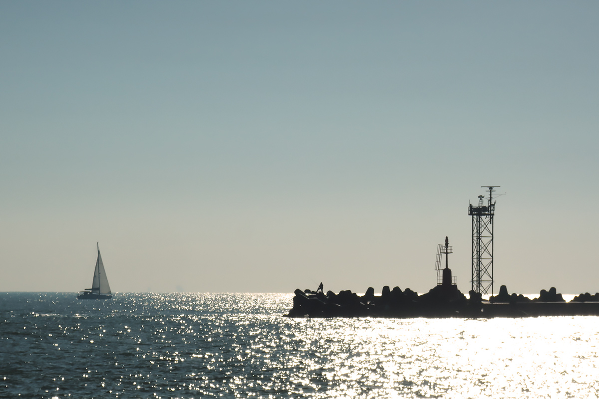 La barriera scura del molo in silhouette è l'ultimo ostacolo visivo.. e poi c'è la ariosità luminosa dello spazio marino aperto,e la barca che veleggia serena,anche simbolicamente , verso il nuovo anno...