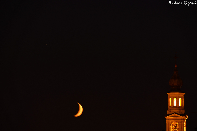 La colorazione sia della luna che della parte di campanile vira molto verso il rosso, anche qui credo sia una scelta, da attenuare eventualmente. |