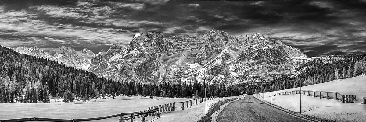 bè si può negare che non sia anseladamsiana ? cielo abeti rocce , tutto punteggiato e chiazzato in grigiobianco, con rimandi e analogie tra loro, l'aperto scenario si offre bello come non mai e ci inorgoglisce di avere in Italia il Sorapiss.