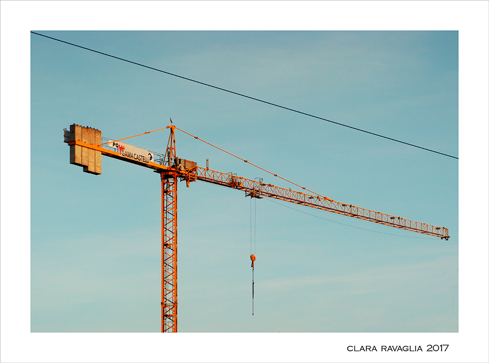 Un grande occhio compositivo permette e suggerisce una visione veicolata verso aspetti geometrici . Risalta ancor piu la struttura colorata in questo cielo che a mio avviso se avesse avuto un po piu di carattere avrebbe preso troppa importanza e distolto dal soggetto. Anche questo, sinonimo di previsualizzazione in fase di scatto che permette di vedere il progetto già finito sin da subito, prima del "click" .Questa tua dote la trovo a dir poco fantastica. Hai usato un F4 , questo lo si risente un pochino alla fine della gru , dove la nitidezza viene leggermente meno , ma sia chiaro, questo non sconvolge un perfezionismo che coerentemente dimostri ma che soprattutto è sempre in perfetta simbiosi con un equilibrio sentimentale .