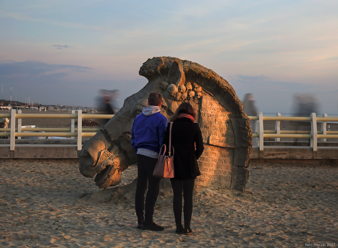 Molto suggestiva questa testa di cavallo che emerge dalla sabbia!Bellissima luce ed ottima composizione.Apprezzabile anche il mosso dei passanti in contrasto con l'immobilità della coppia.Complimenti e preferita.  _________________ Sergio Demitri https://www.flickr.com/photos/124946035@N02/ |